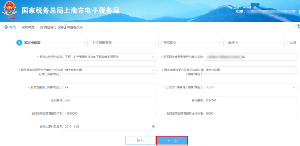 (1)跨境应税服务免税备案操作(以上海电子税务局操作为例):