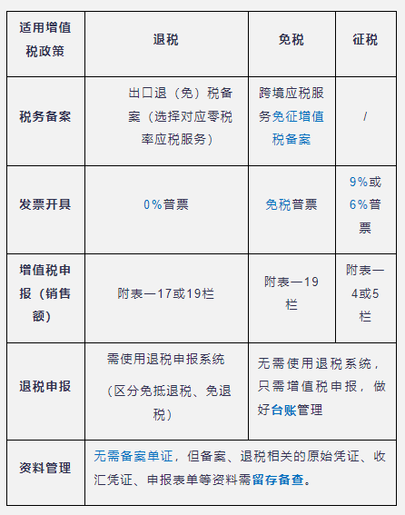 根据提供的跨境应税服务适用的增值税政策,选择零税率或免税 |