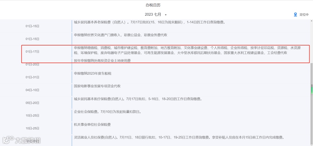 2023年7月份征期截止到17号,请大家合理安排好时间!小编提醒小伙伴们:7月有以下几件大事,我们先来看一下吧:
