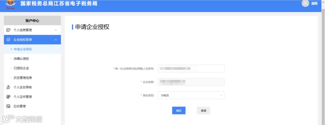 可由企业法人/财务负责人添加或个人发起授权申请,具体操作同以上问题2。