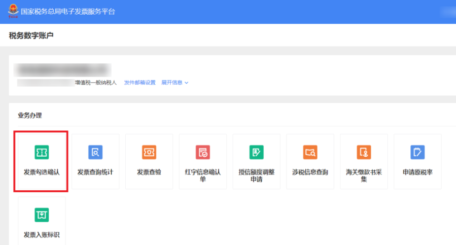 登录电子税务局后,在【首页】—【我要办税】—【税务数字账户】,办理发票勾选确认等业务。