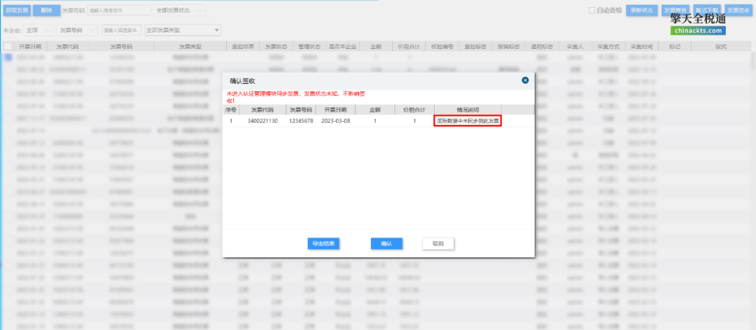 签收的同时系统自动查验发票,第一时间获取异常发票信息。支持批量签收、查验发票真伪,无需手工录入逐条查验。