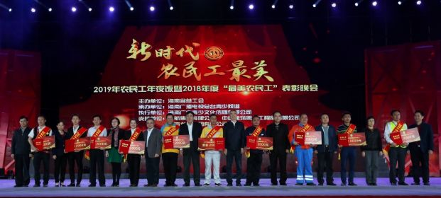 (图注:海南省2018年度“最美农民工”表彰现场,左9为张小山)