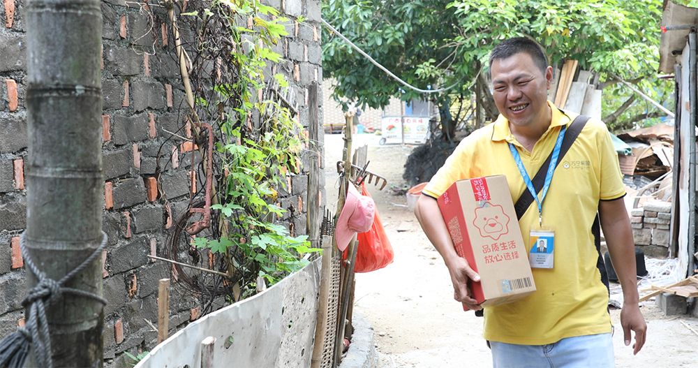 2018年10月,在苏宁干了两年快递员的张小山被派到海口江东片区,苏宁易购当时在这里几乎没有影响力,当地居民虽然接触网购,却没有在线上购买大件家电的习惯,因为原有的快递只能送到镇里或者某个特定的场所,并不能提供送货上门的服务,乡村的土路也给运输造成了很大困难。虽然如今片区已是高楼林立、道路齐整,张小山依然记得一年前把大件送到居民家里的艰辛:“真的是土路,要靠小推车进去,路还七拐八拐的,如果没人带的话,稍不留神就迷路了。”