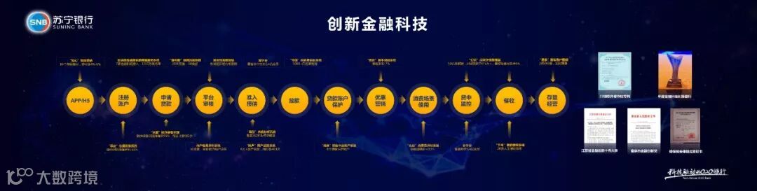 本次发布会上,苏宁银行还举行了金融科技体验中心揭牌仪式,全面展示苏宁银行金融科技研发和应用成果。据了解,苏宁银行目前已经获得23项软件著作权专利,创新成果遍布金融AI、大数据风控、物联网金融、区块链、生物特征识别、金融云等领域。苏宁银行还上线了金融开放平台,外输业务包括基础账户功能、微商贷、联合贷、保理、装修贷、集团资金归集、企业网银B2B,并计划将联合生态内外的合作伙伴,形成金融+教育、金融+医疗、金融+制造业、金融+社交等各种跨界金融服务,构建行业解决方案,满足企业和个人各类金融需求。