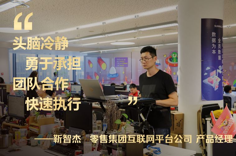 今年是靳智杰入司的第九年,作为第八期1200,靳智杰恰好经历了苏宁从线下零售向互联网零售、智慧零售转型的全过程。9年的时间里,他从一个懵懂的学生成长为了一个成熟的职场人才,用跟他合作过的苏宁公益基金会的同事的话来说:“他是一个非常靠谱的人,在他身上我看到了一个优秀1200应当具有的品质。”