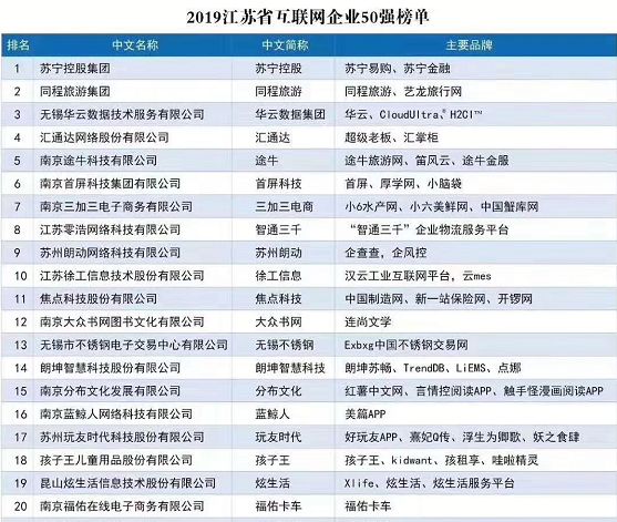 (图苏宁入选2019江苏省互联网企业50强榜单第一名)