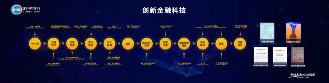 发展普惠金融,不仅要有“愿贷”的使命、“能贷”的场景,还必须有“敢贷”的本领。金融科技创新,无疑就是赋予苏宁银行“敢贷”本领的利器。以苏宁银行消费金融产品为例,从客户触达、审核、放款、贷中监控、客户维护等共计12个节点中,苏宁银行共开发了17个金融科技系统,承担了客户画像、欺诈识别、风险测评、账户防盗等各类不同功能,将金融科技创新真正与业务相融合。基于金融科技创新,苏宁银行不仅大幅提高了业务效率,提升了客户体验,实现了对公客户开户最快(15分钟)、对私贷款秒批秒贷;同时,疏通了融资堵点,缓解了融资难点,实现了普惠金融在金融服务薄弱领域的覆盖。