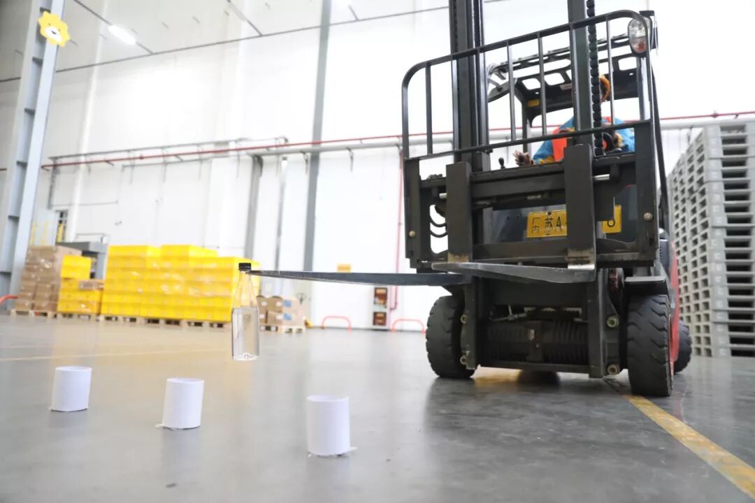 一次休息时,他突发奇想,利用手边的道具——矿泉水瓶和面单筒芯,竟成功用叉车挑起水瓶,瓶中的水几乎纹丝不动。他紧盯水瓶,继续操控叉车,将水瓶稳稳当当地放进和瓶身直径大小差不多的筒中。同事将这段挑战拍下,火爆抖音。