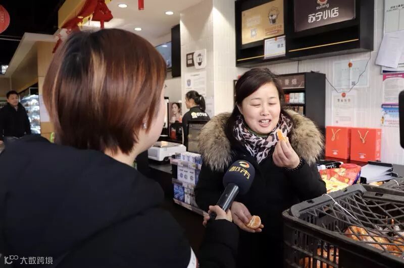(图:消费者在苏宁小店购买湖南滞销椪柑)