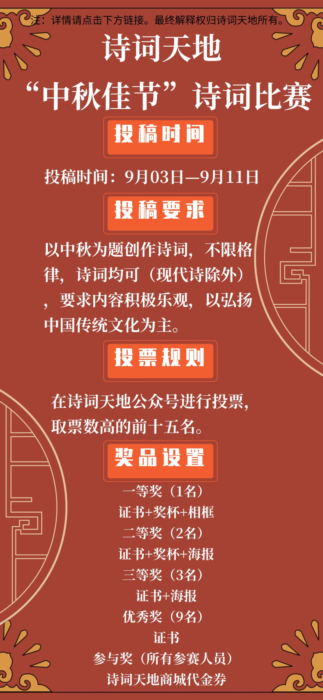 详情请点击文字链接:“中秋佳节”诗词比赛活动开始啦!