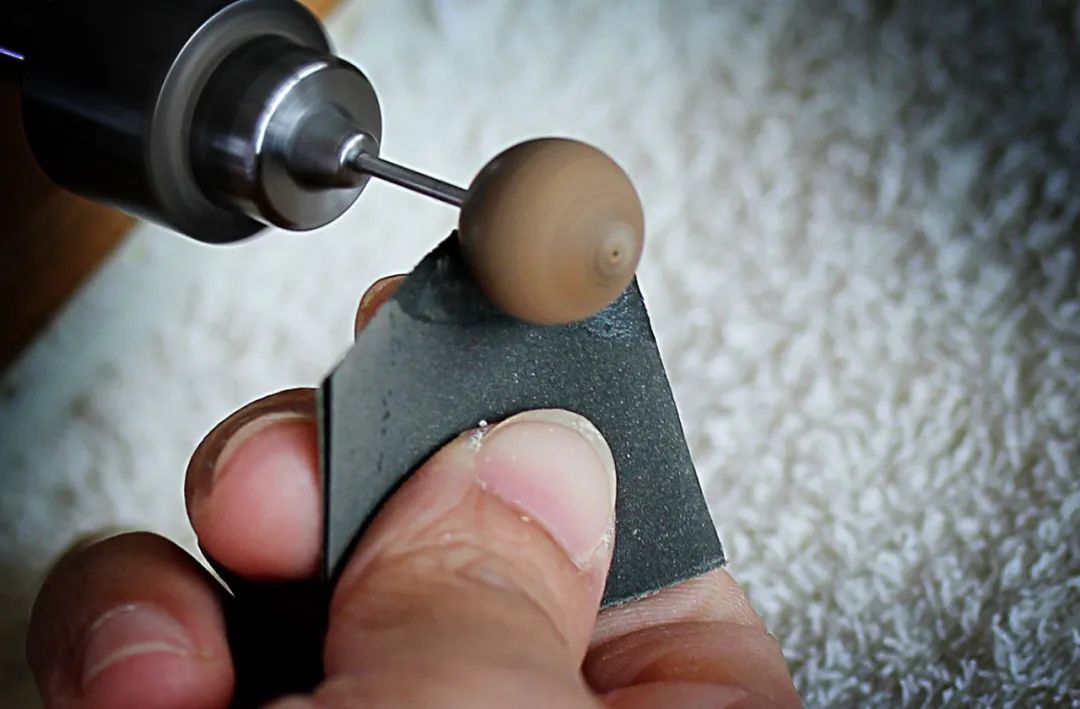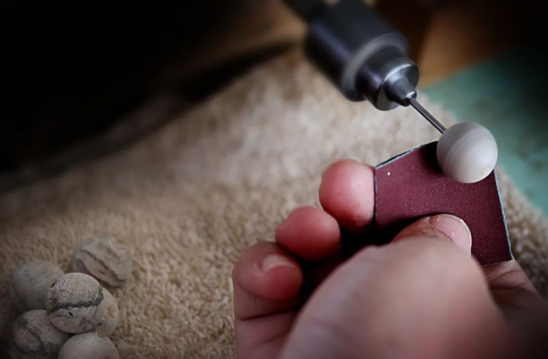 沉香手串的加工步骤并不复杂,如今,有了电动车床,车珠子不再耗时耗力。不同目数的砂纸,也让打磨抛光成为了一件非常简单的事。