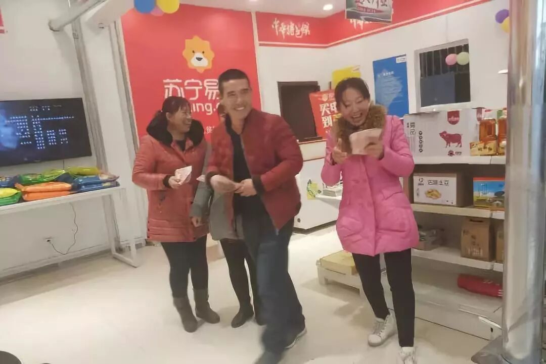 图:苏宁扶贫实训店建档立卡贫困学员领到第一份工资难掩兴奋