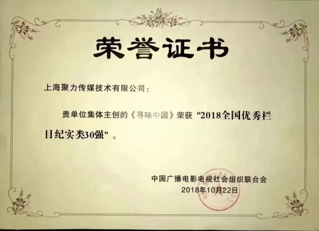 图:《寻味中国》获得“2018全国优秀栏目纪实类30强”