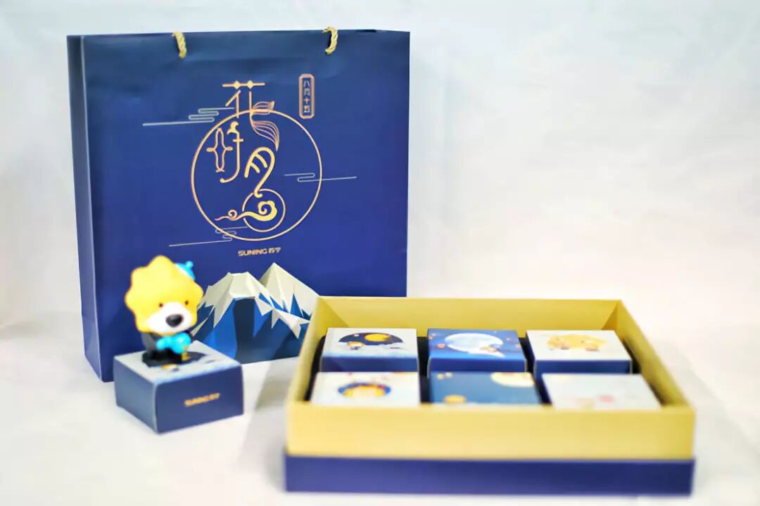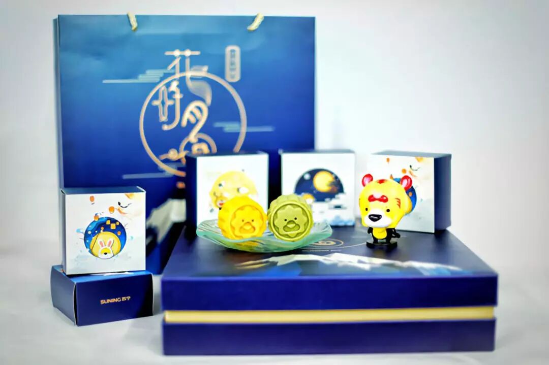 苏宁今年推出了公司吉祥物小狮子图案的定制月饼,