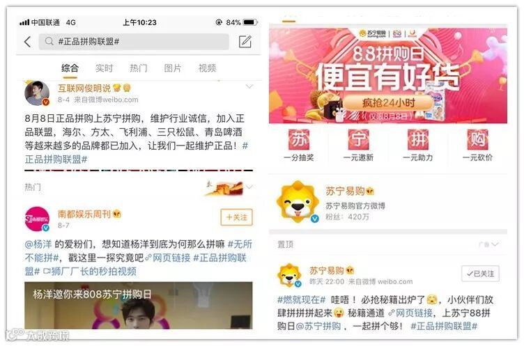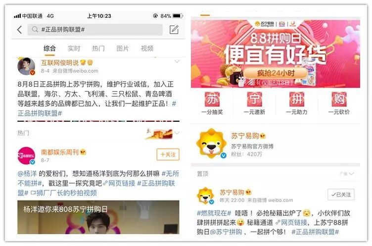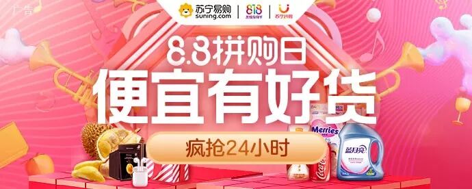 8月8日,苏宁拼购正式上线。苏宁为此成立了“正品拼购联盟”,得到了海尔、方太、伊利、飞利浦、青岛啤酒等品牌支持。