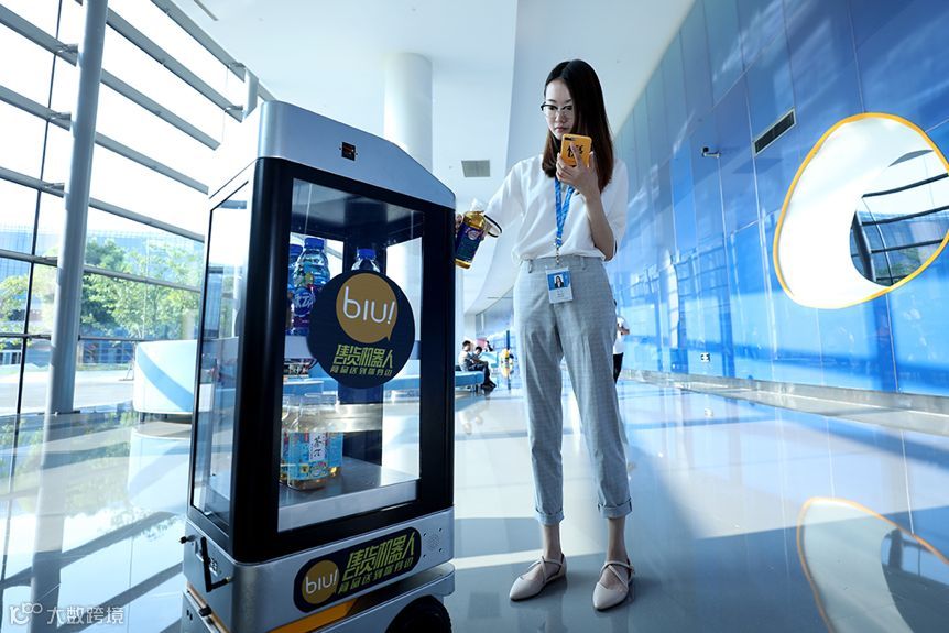 在直接改善用户体验方面,售货机器人就是一个很好的代表。这款造型可爱的机器人在商场内全天候巡游,顾客可通过语音或触摸的方式让其停止前行,手机扫码后机器人打开货柜,自行选取商品。