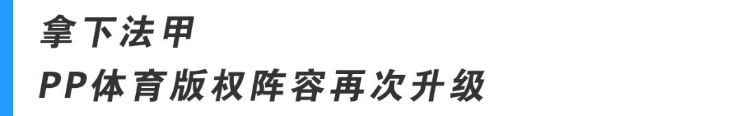依托苏宁集团强大优势,PP体育已经斩获法甲、德甲、英超、中超、亚冠、中国之队、WWE、UFC等重量级独家赛事版权,形成以足球产业为核心的体育内容矩阵。