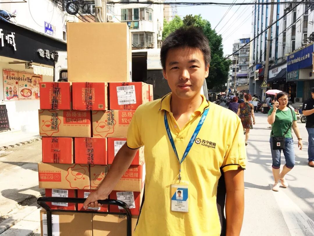 今年5月,在谷阳大厦工作的张先生收货地址漏写了楼层和门牌号,电话也一直联系不上。面对这么一个快递,孙师傅送完其他货后又返回大厦,20多层的大厦每一家公司亲自询问,但还是找不到收货人。直到晚上,张先生看到孙师傅发的短信才打电话联系上。原来张先生来大厦上班没几天,当天手机又落在了家中。因为马上出差,买的东西又急需要用,孙师傅二话没说,骑着车赶往几公里外,把包裹送到顾客家中。为此,张先生还特地微博留言点赞,“苏宁小哥真棒!”