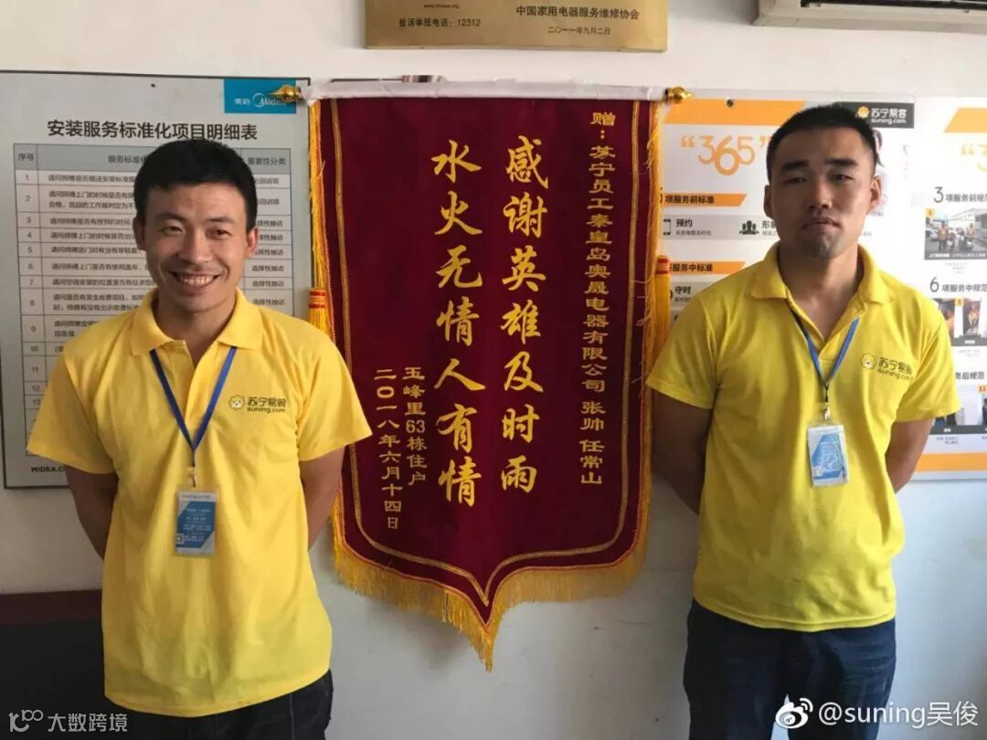 集团售后服务公司的苏宁帮客服务工程师们平日里在岗位上吃苦耐劳、技术过硬,遇到险情挺身而出、见义勇为,他们是苏宁最可爱的人,是当之无愧的英雄。苏宁帮客相关负责人表示,这四位工程师在危险时刻勇敢的挺身而出进行救援,值得我们所有人员学习。集团也会在近期对四位工程师提出物质及荣誉奖励。