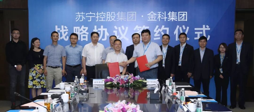 5月21日,苏宁和位列中国地产品牌价值十强的金科集团签署战略合作协议,双方不仅将在零售板块携手展开苏宁小店、苏宁易购直营店及其他业态超200个项目的开发,还将在投资、金融、采购等板块进行深度合作。