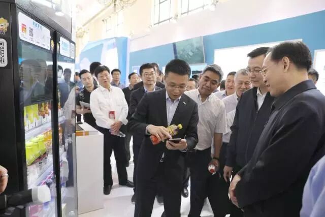 苏宁控股集团 马康向来访嘉宾介绍苏宁智能货柜