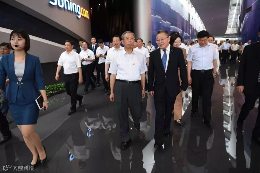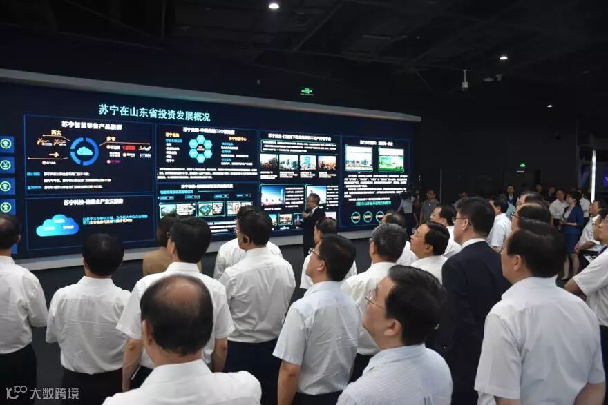 在江苏省产业技术研究院考察学习后,7月8日下午15时许,山东省党政代表团一行来到本次考察学习的最后一站——苏宁控股集团,考察传统产业采用互联网、物联网、大数据等新技术、新模式,多渠道融合、多业态协同发展,推动零售业变革发展等情况。