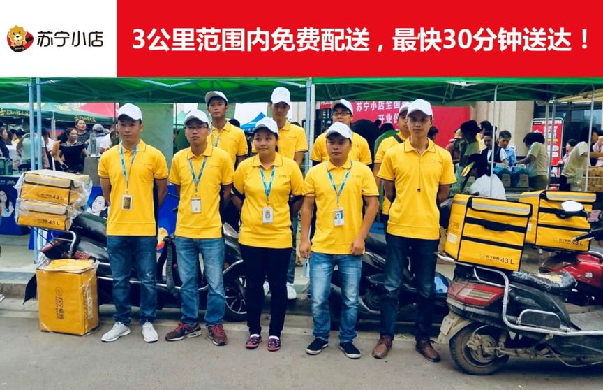 目前,苏宁小店面向消费者提供3公里范围内最快30分钟急速配送的极致服务。通过服务体验来抢占社区高地,这也成为苏宁小店的差异化竞争方式。