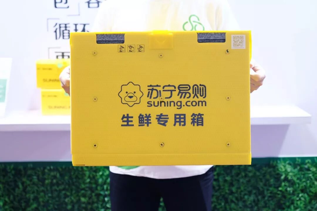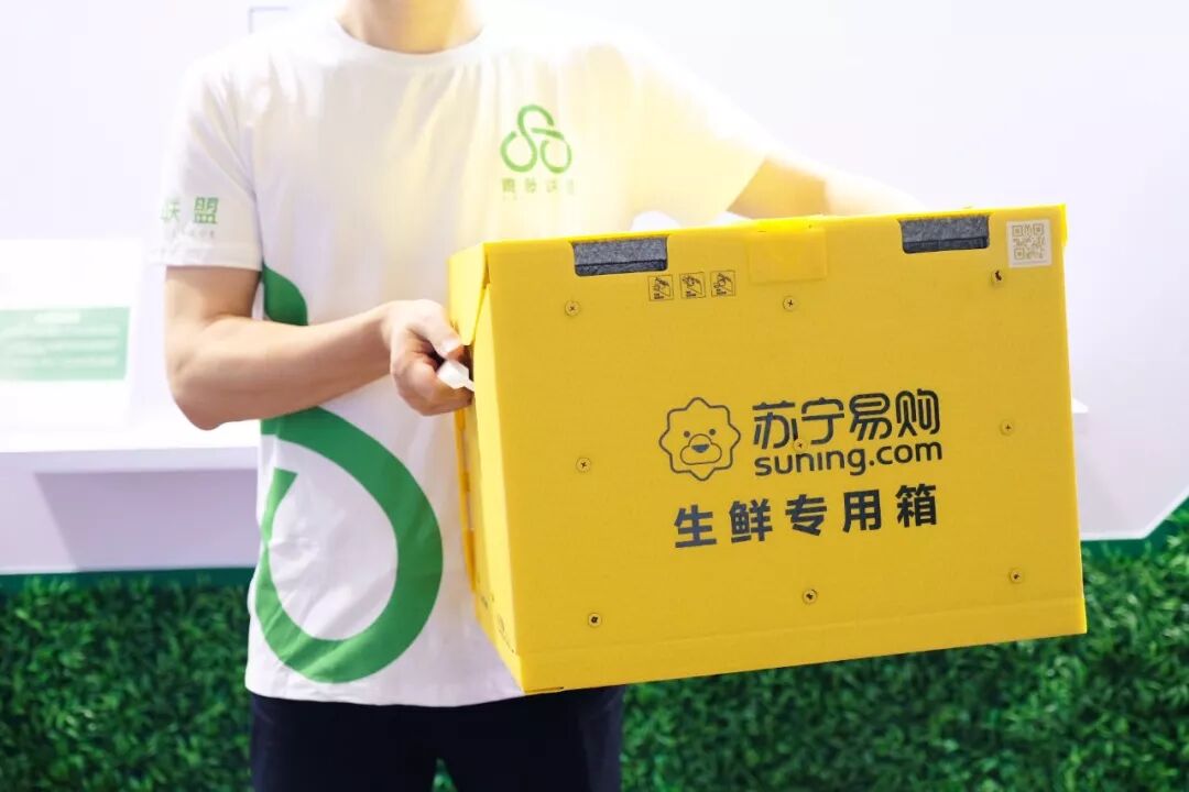 到了4月25日,苏宁物流联合灰度环保科技,在“绿色•智慧物流大会”上发布了国内第一款冷链循环箱产品。这款可折叠、可回收的产品,符合苏宁一直提倡的共享快递盒理念,将率先在苏宁冷链网络中首发,进行场景测试应用,为消费者提供更好的生鲜消费体验。