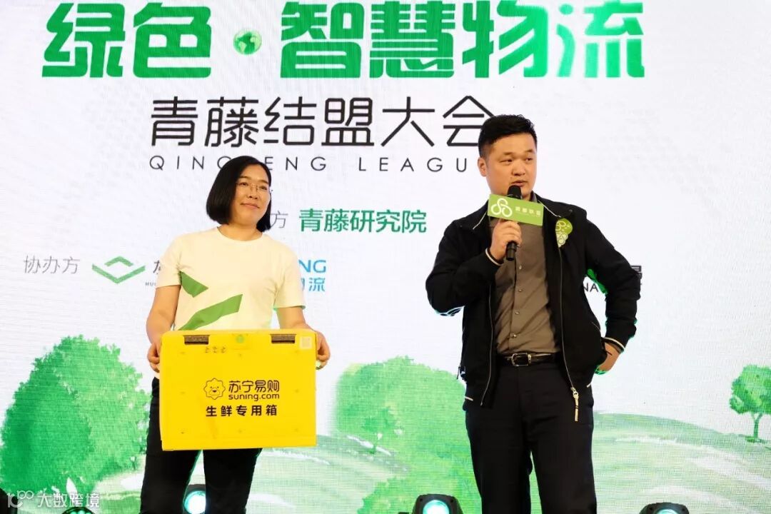 (苏宁物流研究院副院长孟雷平发布生鲜版共享快递盒)