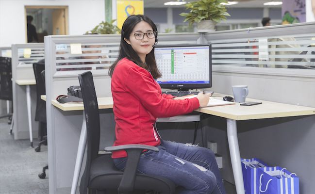 薛娇,12年加入苏宁客服这个大家庭,六年的时间,她最少接过近十万个服务电话。每天早上八点半,换上工装,整理好桌面,然后打上一杯热水,戴上耳机,登陆好客服系统,便开始了她一天的工作。