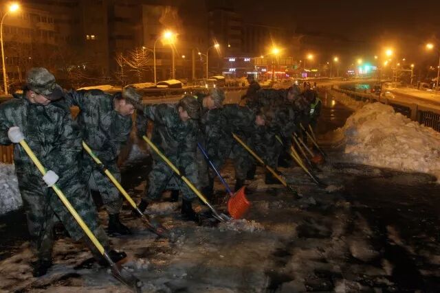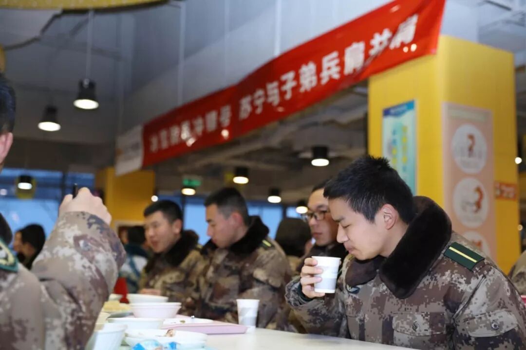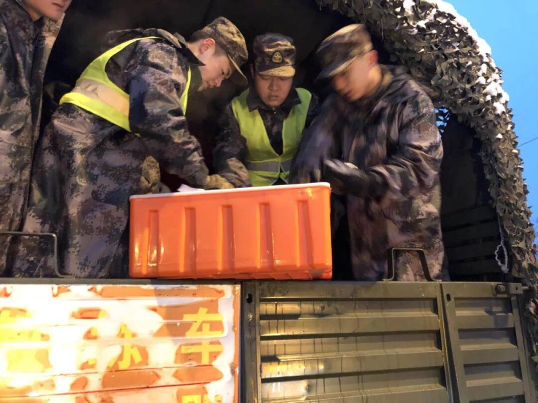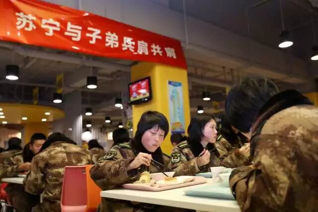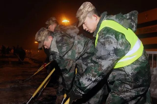 冰雪就是冲锋号,数千官兵火速响应,连日来奋战在第一线,扫雪除冰,彻夜不眠,感动了亿万网友! 28日一早,当南京军区某部数百名官兵顶着暴雪和酷寒,来到徐庄苏宁总部地区除雪时,苏宁早已备下热腾腾的姜茶和早餐,还有大量热水袋、一次性拖鞋,并邀请子弟兵到苏宁食堂用餐,为官兵们除劳解乏,补给能量。苏宁的志愿者还将早餐送到了南京各地扫雪点作业的官兵手中。