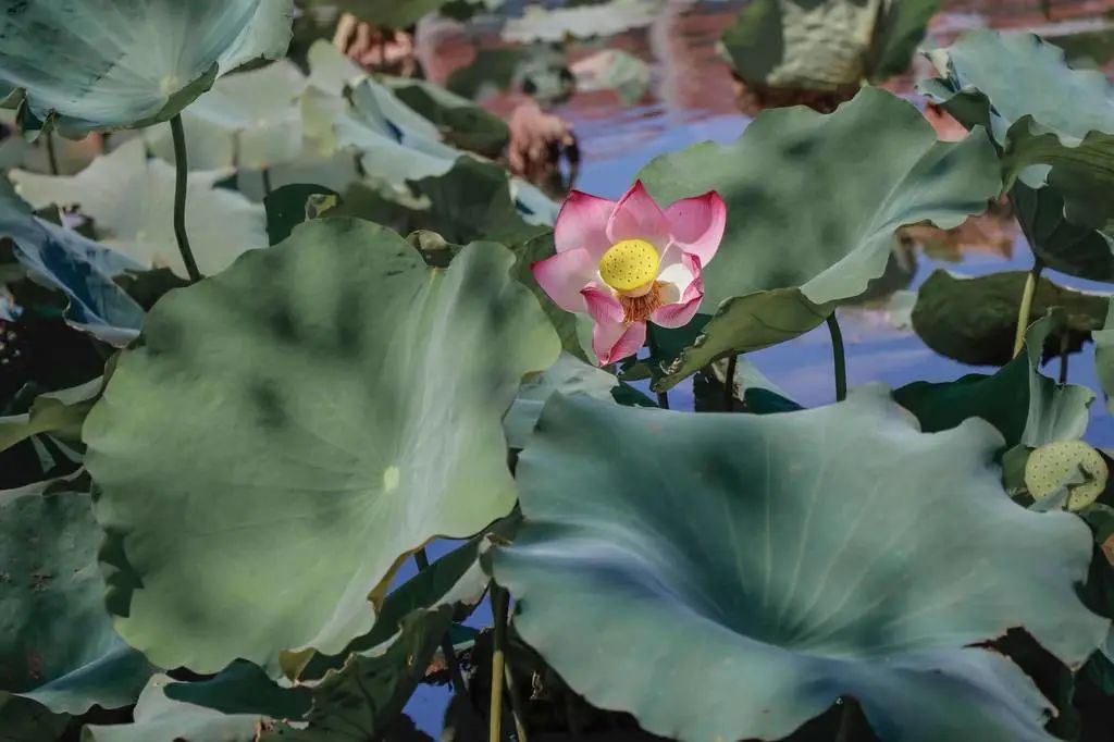 坐在荷花塘边一手扇子一手喝茶,有种意外的和谐感,原来夏日里也有诗和远方。