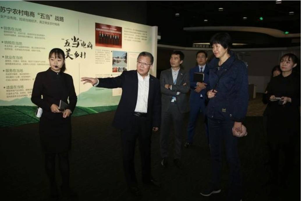 在苏宁展厅,苏宁云商副董事长孙为民向郎平讲述苏宁27年发展史。郎指导饶有兴致的了解苏宁三个十年的发展变迁,当得知苏宁云商今年已跻身世界500强企业时,郎指导的兴趣更浓,她说:“希望有更多的中国企业迈进世界500强”!