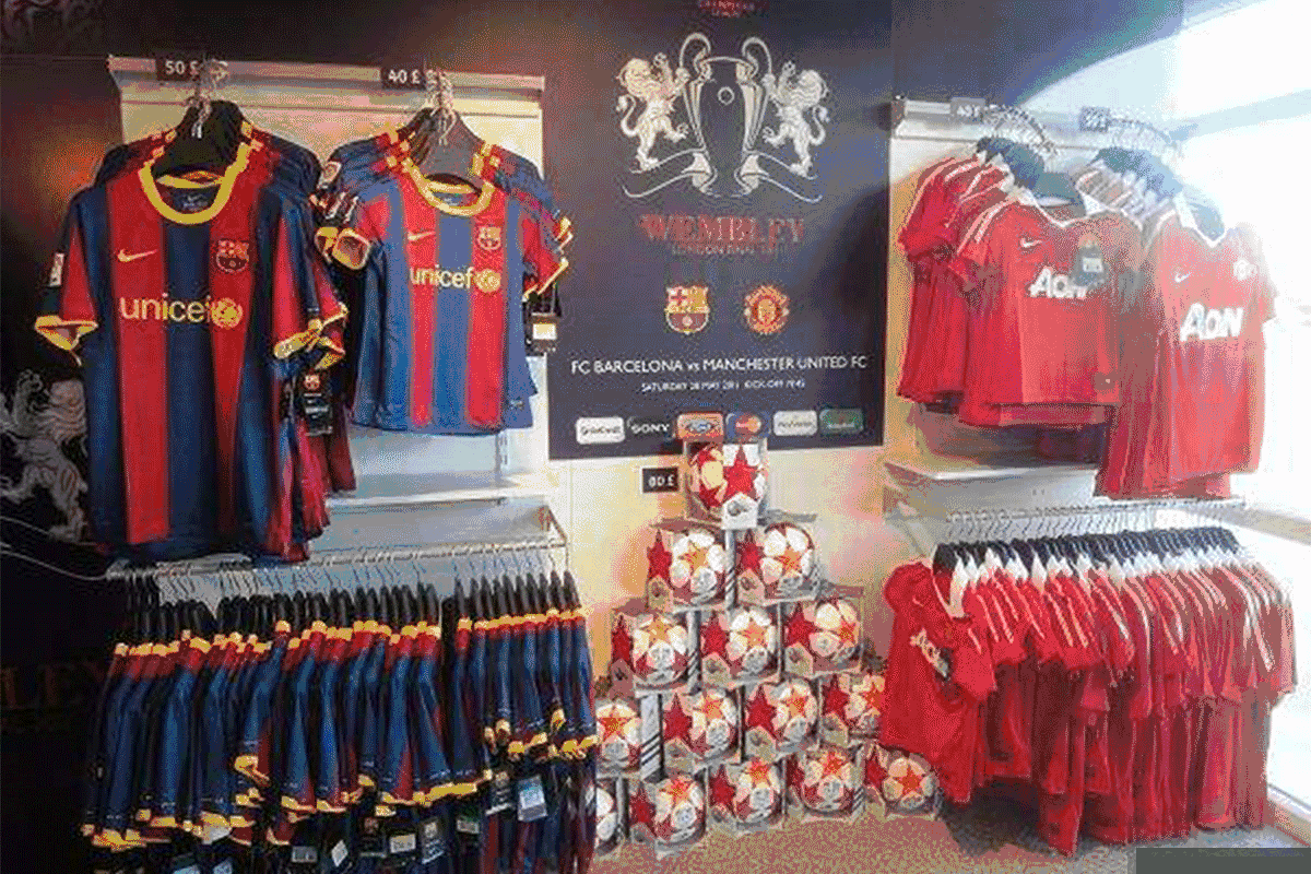 比如在负一层,设有球迷专属区域,世界杯及豪门俱乐部的稀缺衍生品在店内都可以找到,像世界杯玩偶、限量版CR-7银球战靴、猎鹰18+超高端足球鞋、萨内蒂、特谢拉签名球衣、德甲球星签名球衣等,可谓一应俱全。