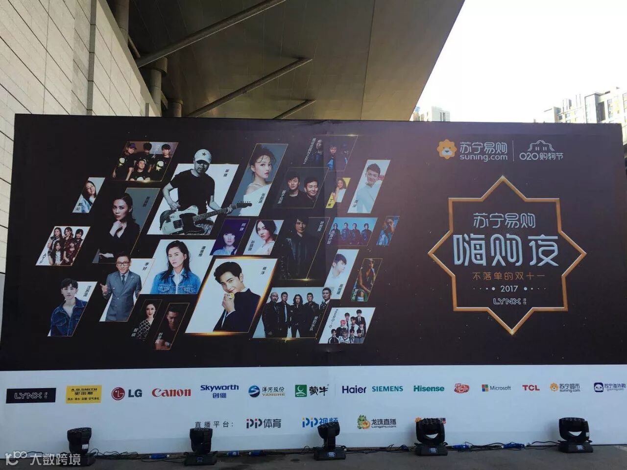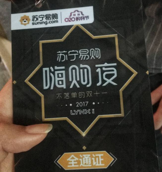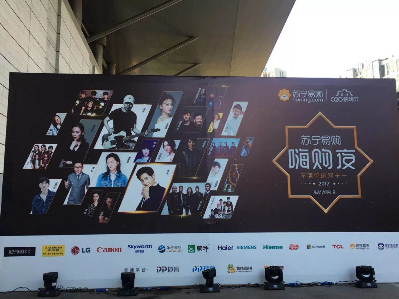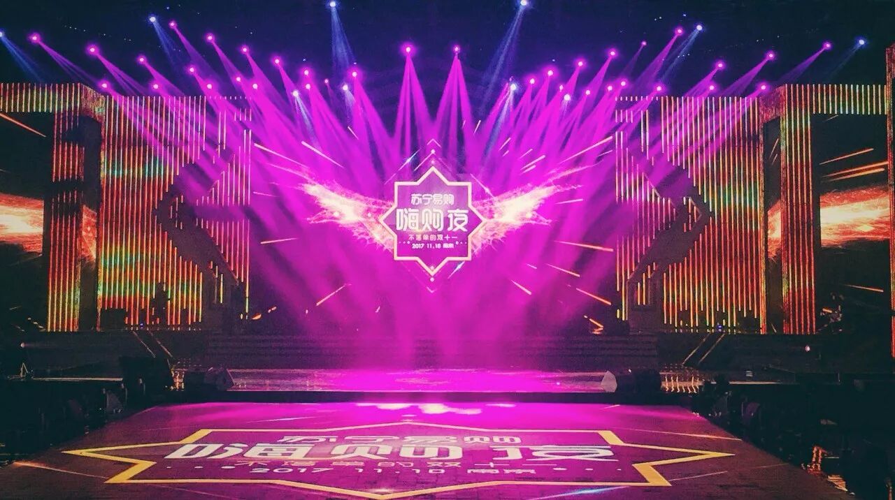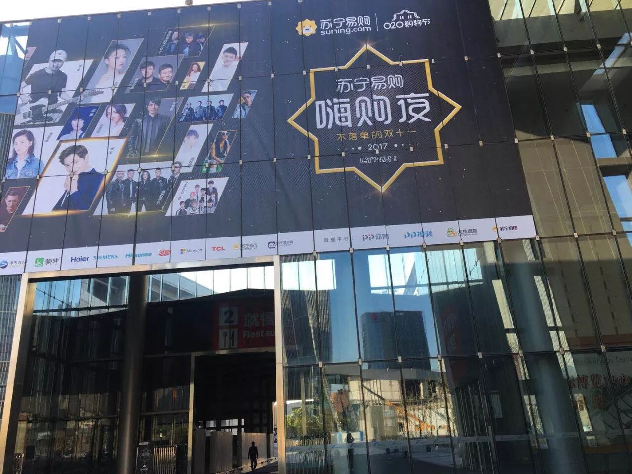 瞧,鲜艳的紫红色映照的“苏宁易购嗨购夜”主题