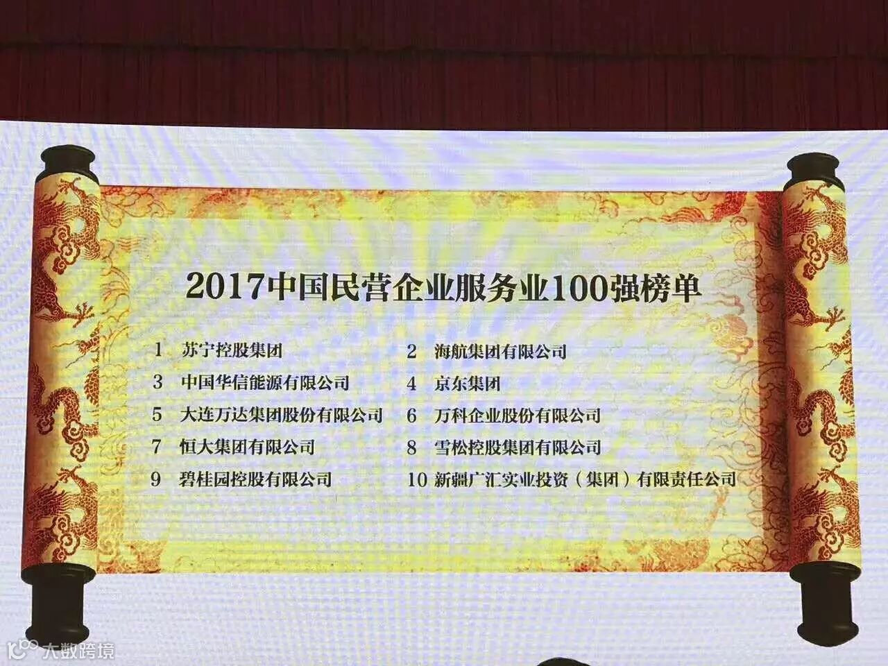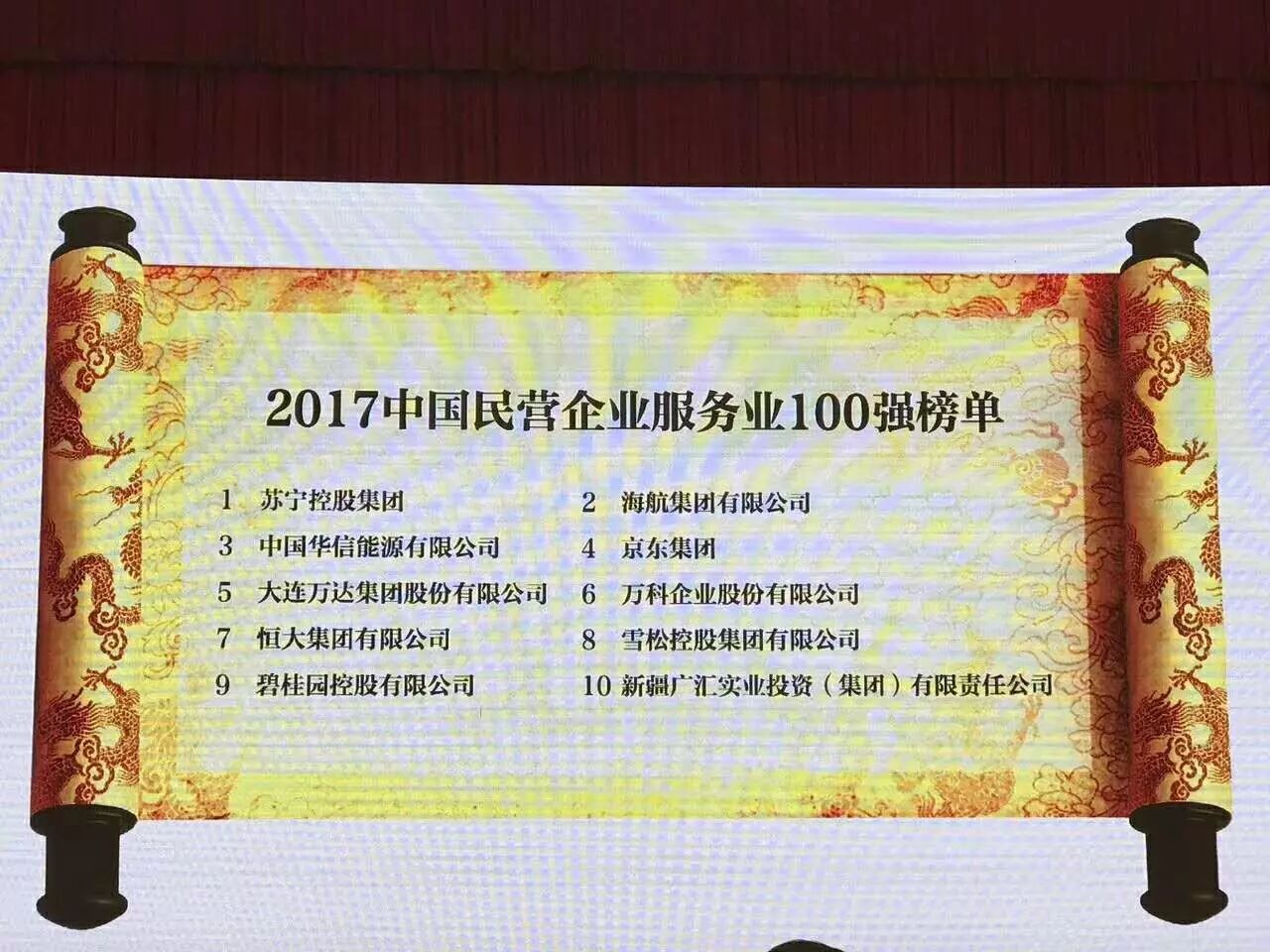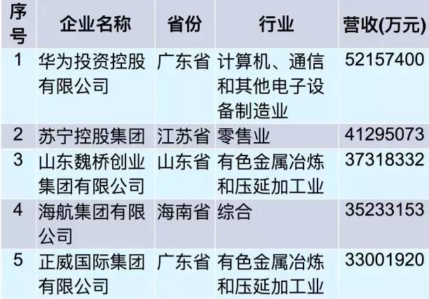 8月24日,由全国工商联主办,工信部、国家工商总局支持的2017中国民营企业500强发布会在济南召开。在2017民营企业500强榜单中,华为投资控股有限公司、苏宁控股集团、山东魏桥创业集团有限公司位列2017中国民营企业500强前三名。在同时公布的2017中国民营企业服务业100强名单中,苏宁则位列第一。上个月,苏宁控股集团旗下苏宁云商更是首次跻身《财富》的全球财富500强榜单。