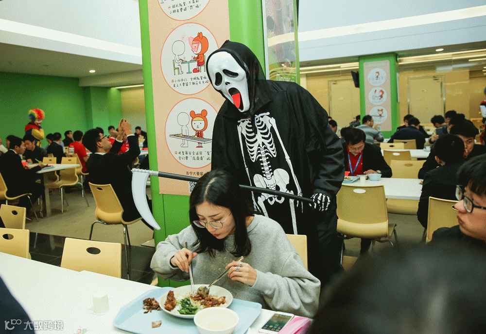 午餐时间的苏宁员工食堂,这把快闪又复制一次,V字怪客从你面前一闪而过,小魔女惊恐又略带蠢萌的妆容,让苏宁食堂坠入二次元世界。