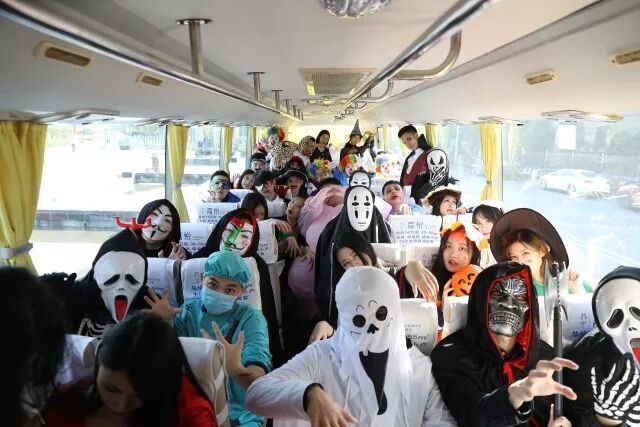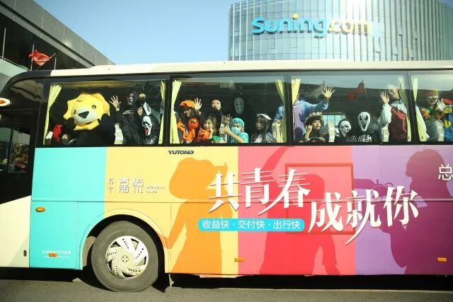 一伙儿不速之客闯入了格子衫和西装们的阵地,满满一车的鬼怪、女巫和幽灵现身苏宁总部园区。