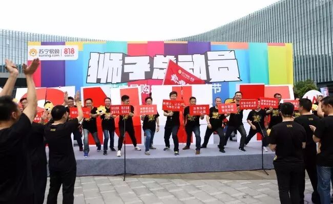 苏宁易购集团在侯总的带领下,发出“选产品、强体验、聚焦用户;双平台、四渠道、决胜818!”的誓言。
