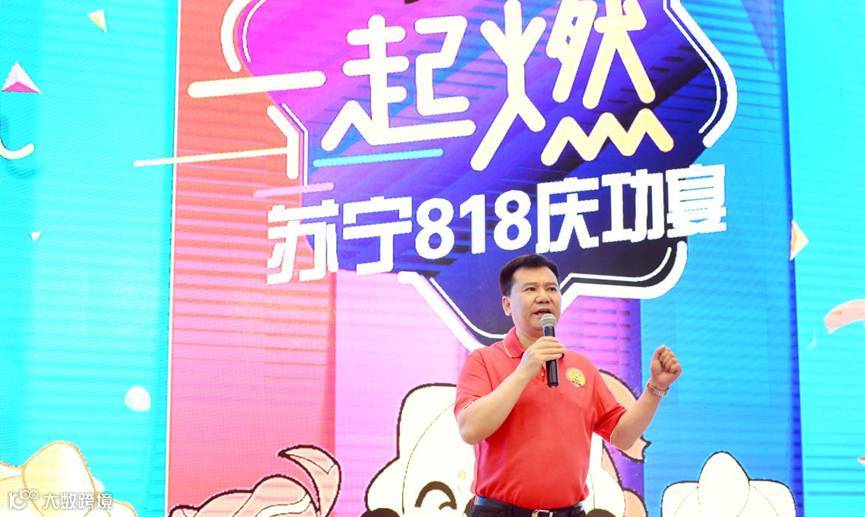 (图: 张近东在818庆功宴讲话中为员工鼓劲)