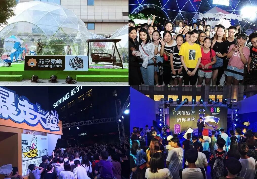 围绕粉丝经济,发挥苏宁双线优势,利用IP和粉丝的高粘性进行粉丝牵引和消费行为的引导。市场团队在818期间围绕分类分群做足了噱头。明星闪店的线上开店、线下落地。消费者可在线上购买明星周边,线下亲身体验明星店。8月11日,欧阳娜娜在苏宁易购闪店准时上线,下午空降上海五角场,8月12日网络热门暴走漫画线上入驻苏宁易购,同时空降南京清江广场。8月13如索尼音乐人气六位明星到场参与,为苏宁818造势传播。