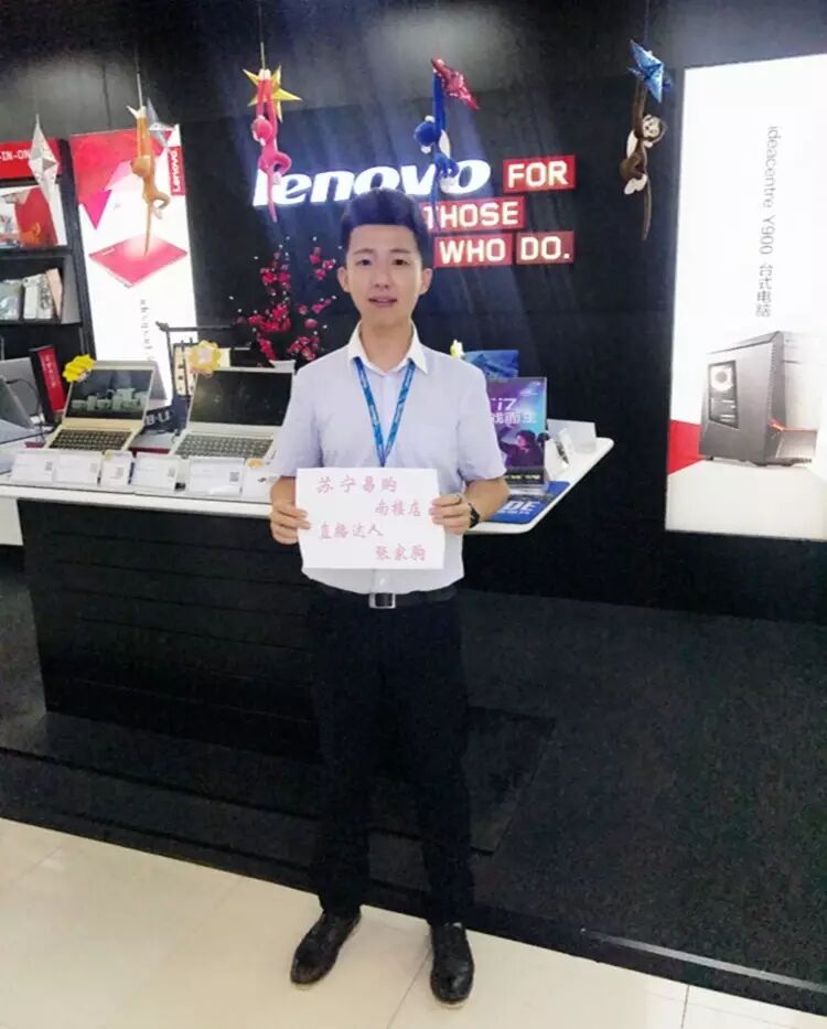 天津大区南楼店的张家驹在他们店里面,并不是最年轻、也不是长得最帅的销售督导,然而他却是学习能力最强、情商最高的90后。2010年,他从学校毕业后以应届毕业生的身份入职苏宁,8年来一直忠心耿耿、兢兢业业留在苏宁发展。在南楼店20多个自有员工8个督导里面他深受店长和同事好评,大家戏称他为“小鲜肉”,因为凡是有跟其他体系、跟部门负责人沟通不好的问题,只要派他出马,总能化险为夷。这种神奇的功力并非一朝一夕练成,一方面他人极为幽默风趣、心胸广阔,总能将大事化小小事化了;另一方面,他能迅速把握新环境、新形势下的此消彼长,所以,在今年1月份刚刚出现直播这种“新事物”的时候,南楼店店长脑海里最先蹦出来的名字就是“张家驹”。