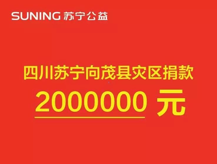 得知灾情严重,苏宁控股集团董事长张近东立即指示,要充分发挥现有的苏宁门店、物流优势,组织距离灾区最近的力量参与救灾。同时,四川苏宁宣布捐款200万元用于紧急救灾和灾后重建工作。