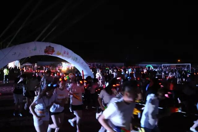 荧光夜跑是参与者利用荧光装备随性装扮,与其他参与者盛装出席,进行无排名之分、无速度之争的运动,现场提供的各式小活动和小礼品,还有暖场活动。