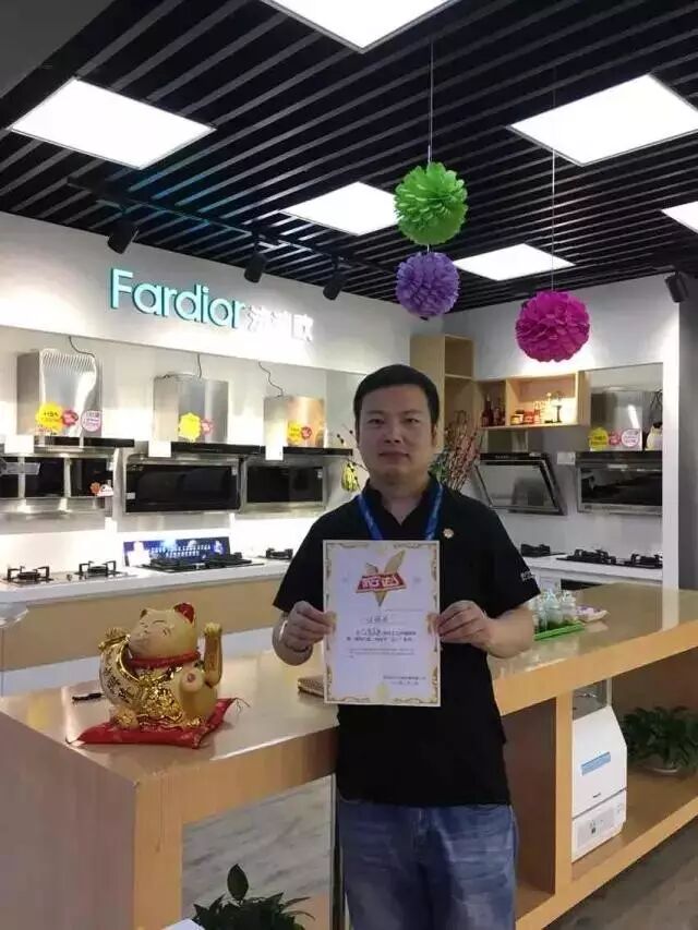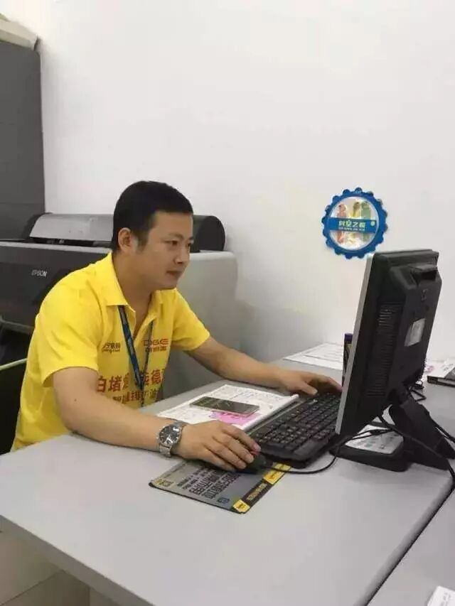 2015年的时候,何叔叔来到了现在的莲湖路门店,那是他第一次接触到了电脑设计,后来店里的美陈走了,领导让他兼任,他临危受命,却越干越出色,有其他门店的人过来参观,看到店里的美陈都是赞不绝口,渐渐地,“莲湖路店的何峰涛美陈做得很棒”这样的名声在西安大区传开了。因此何叔叔经常被邀请去帮忙布展、设计改良pop,如果适逢西安有新门店开张,何叔叔还会被借调走几天增援,督导有时候会开玩笑说他只有“半个自营”。可是这半个自营的销售成绩可不容小觑,6月15号上市的某品牌净水器,截止目前何叔叔已经销售了11台,是西安大区的NO.1。