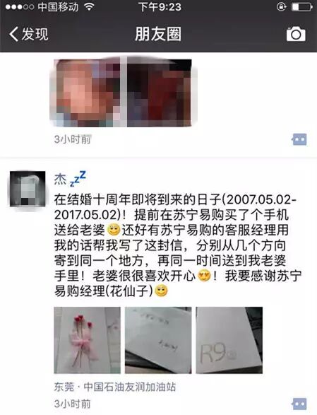 深圳的周先生4.14号上午致电4008365365表今年适逢结婚十周年纪念日,和妻子分隔两地,想在苏宁购买手机作为礼物,同时想在手机包装箱内放置一个贺卡,写下与妻子的爱情故事来纪念这个特别的日子,请苏宁客服帮其达成这个愿望。