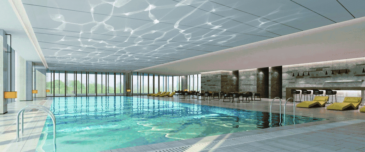 看窗外山河吞息不止,恣意享受汗水湿透衣襟的舒爽;粼粼波光的泳池,闪动的浮光放慢你的节奏,静静享受生活的惬意。