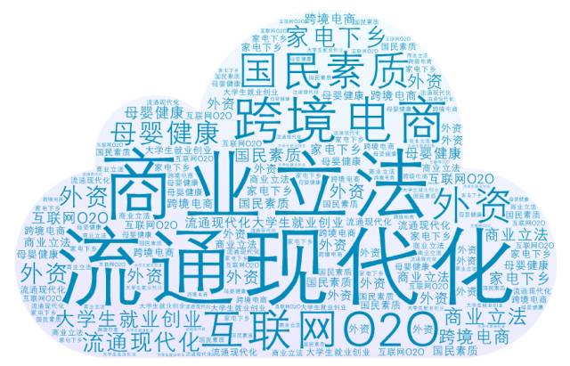 70个提案涉及家电下乡、商业立法、流通现代化、国民素质、大学生就业创业、跨境电商、互联网O2O、母婴健康、外资等多个领域。