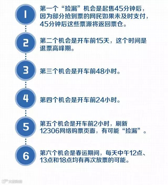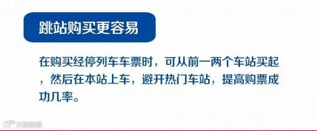首选网络、手机APP线上抢票;跳站抢票更容易,即从目的地前的一两个站买起,然后在本站上车;拨打其他城市的订票电话;留意加开的临时列车;每次抢单张火车票成功率更大;使用自动刷新功能锁定坐席;掌握“捡漏”的时机。